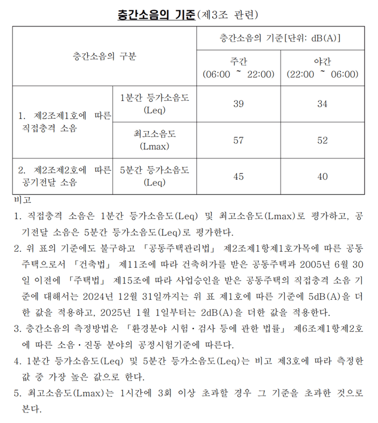 층간소음의 기준에 대해 아래와 같이 정하고 있는데요