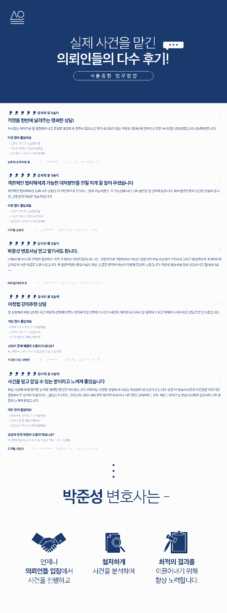 따라서 좋은 결과를 반복적으로 낸 변호사의 조력은 매우 필요합니다.