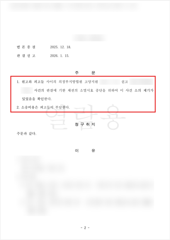 1. 소멸시효 중단 배성권 변호사 수행사례