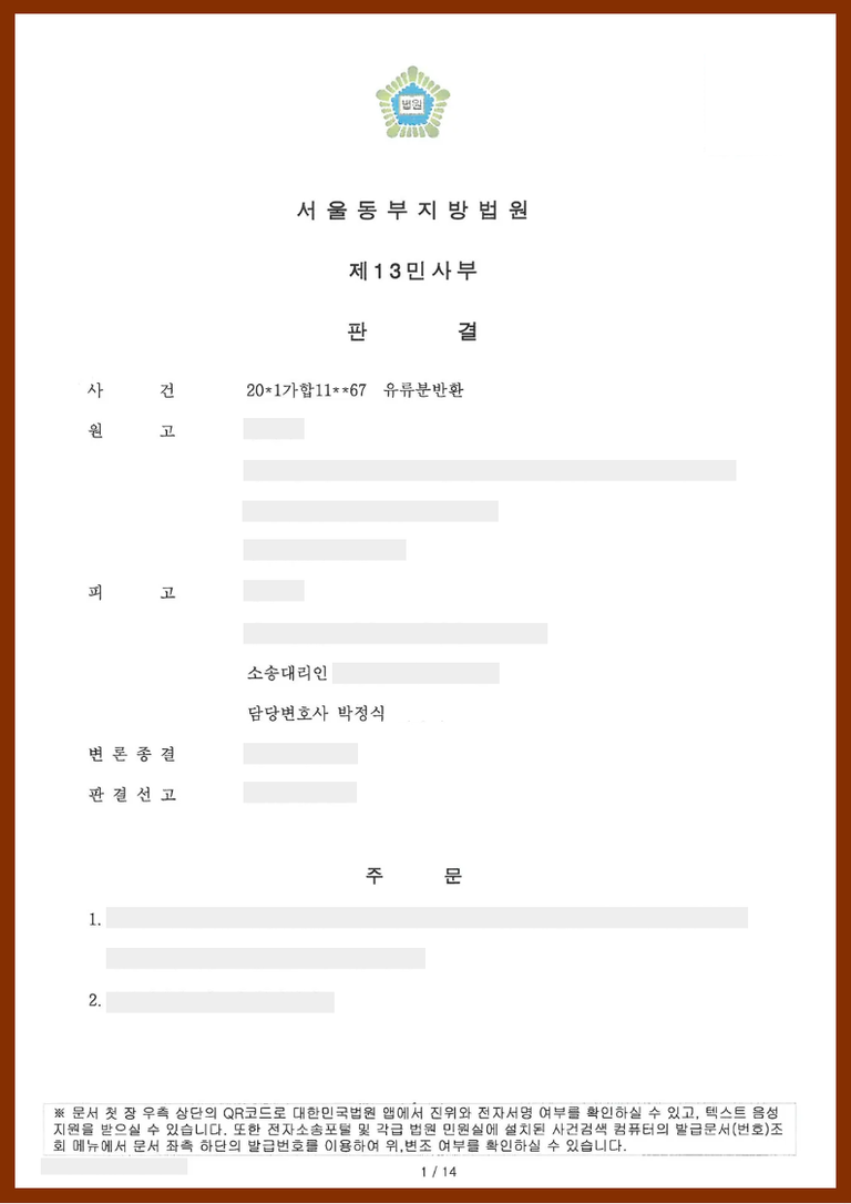 따라서 재판부는 원고에게 유류분 부족액에 상응하는 유류분을 반환할 의무가 있다고 판단하였고, 원고가 가액반환으로 유류분의 반환을 청구하고 있고, 이에 대하여 피고도 다투지 아니하므로, 가액반환의 방법으로 유류분 부족분의 반환을 하는 것으로 판단하였습니다.
