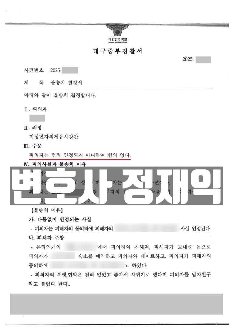 결과: 미성년자의제유사강간 무혐의(불송치)