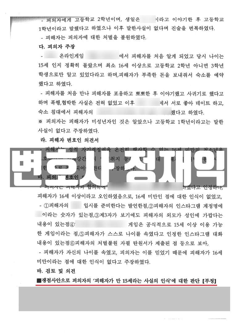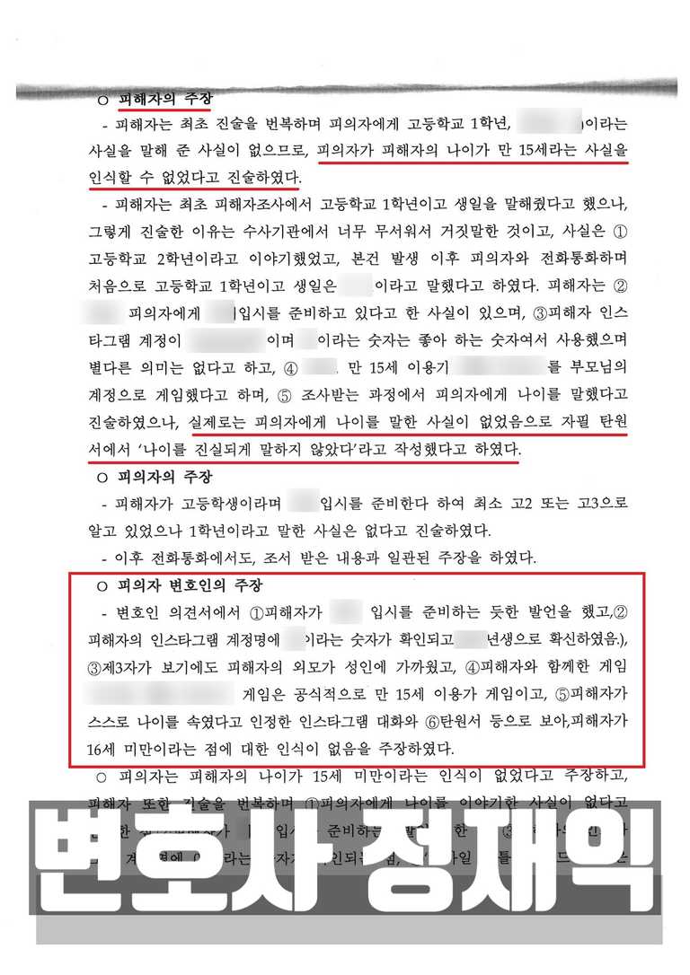 정재익 변호사의 전략적 변론: 피해자 연령 오인 사유 증명에 집중