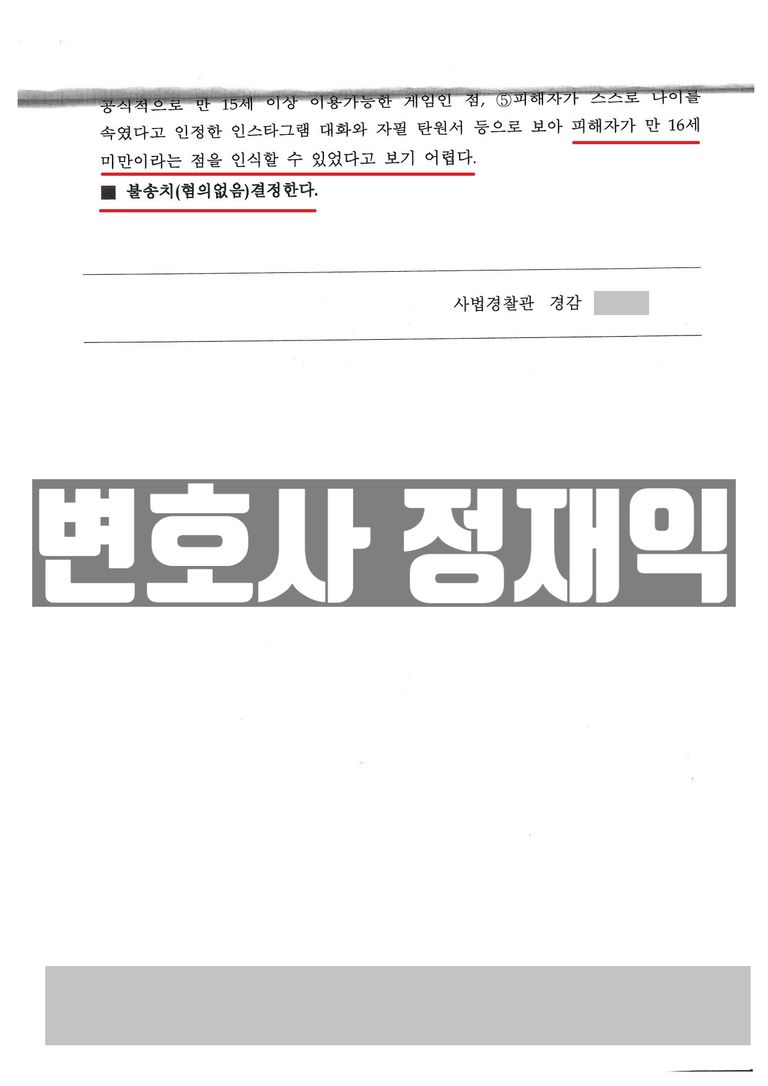 사건기록을 전달 받은 검사도 따로 재수사나 보완수사 요구 없이 사건기록을 반환하여 종결함으로써 L씨는 가까스로 미성년자를 상대로 한 성범죄자라는 낙인을 피할 수 있었습니다.