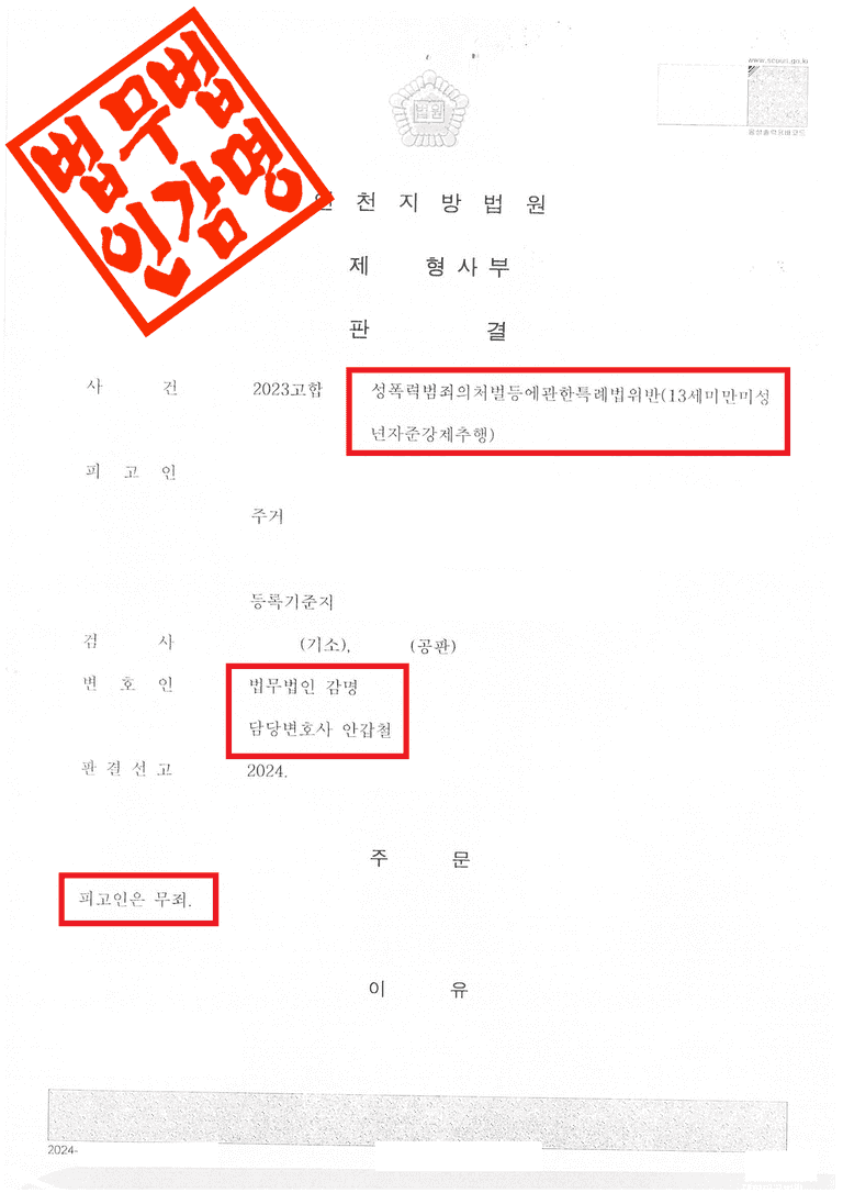인천지방법원은 이 사건에 대해 다음과 같은 사유로 무죄를 선고하였습니다.