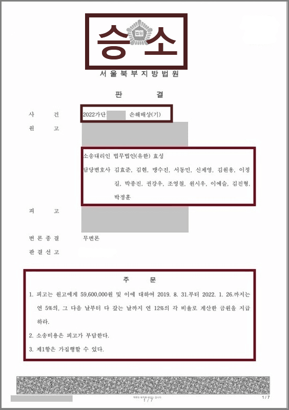 신속한 소송과 집행을 통해 원고 전부 승소와 재산 집행까지 성공한 사례입니다.