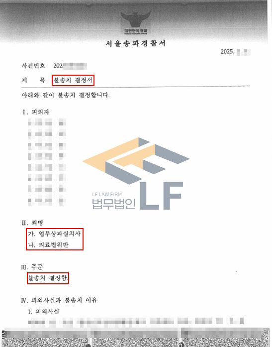 의뢰인이 본 변호인을 찾아오지 않았다면 사건은 검찰로 넘어갔을 수도, 심각하게는 의뢰인에 대한 업무상과실치사등의 혐의가 인정될 수도 있었을 것입니다.