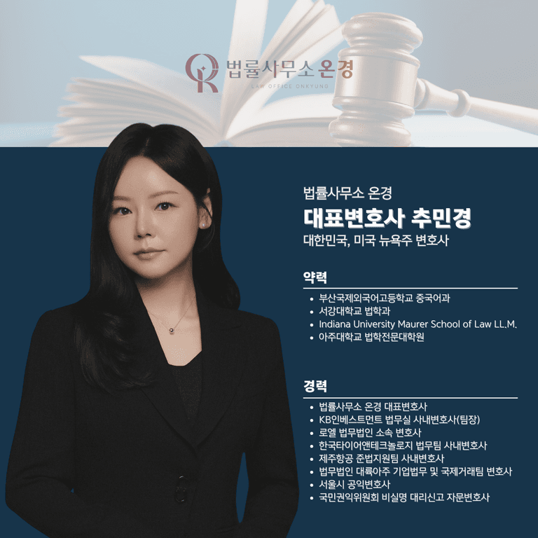 안녕하세요. 법률사무소 온경 대표변호사 추민경입니다.