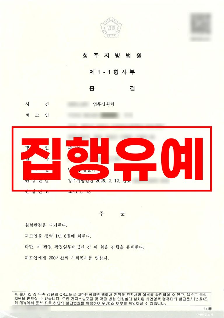결과적으로 의뢰인은 1심에서 받은 실형 판결을 뒤집고 집행유예 판결을 받아 구치소에서 석방될 수 있었습니다.