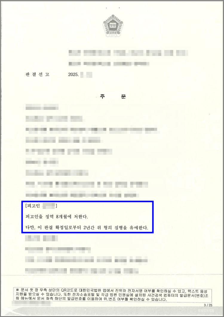 법원은 의뢰인1과 의뢰인2에게 징역 8개월, 집행유예 2년 선고