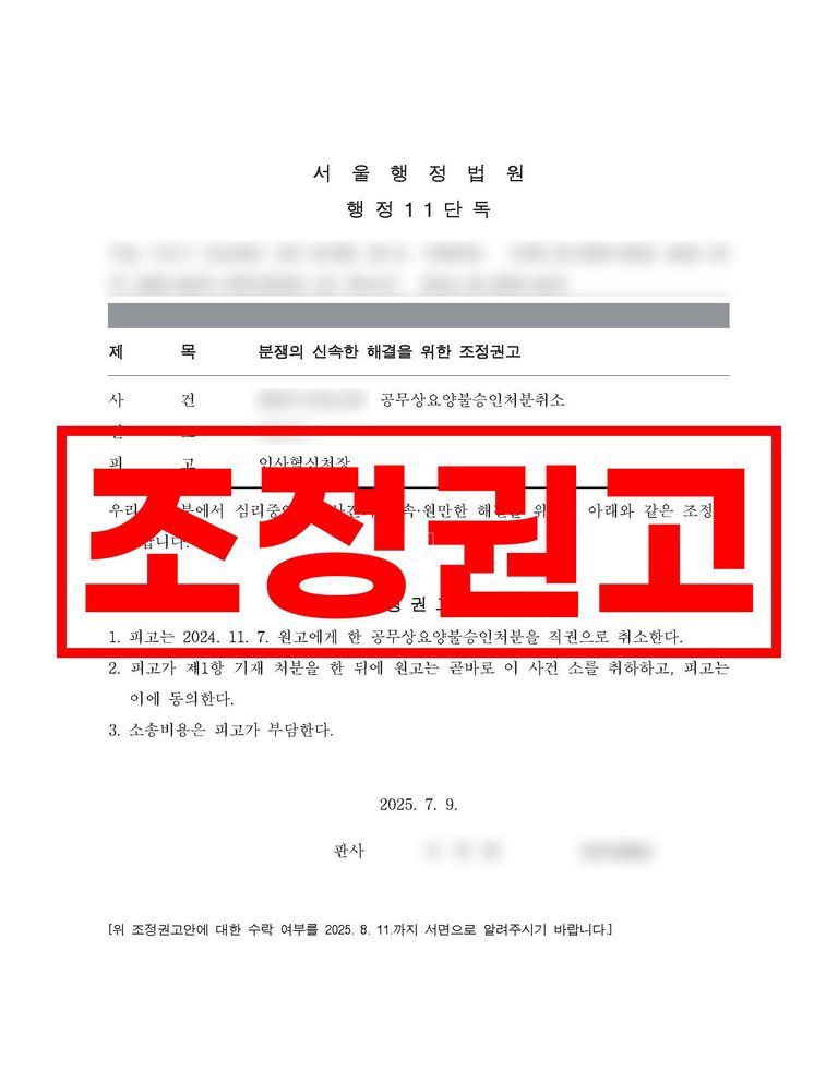원고 전부 승소 취지의 조정결정권고가 내려졌고,