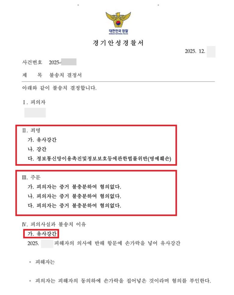 이번 포스팅 내용은 제가 담당했던 사건 중 의뢰인이 반동거를 하던 전 여자친구와 헤어지게 되고, 의뢰인이 전 여자친구의 친한 친구와 사귀게 되자, 전 여자친구가 의뢰인은 강간, 유사강간, 명예훼손으로 고소를 하여 의뢰인이 경찰조사를 받게 되었고, 경찰에서 무혐의 불송치 결정으로 종결된 성공사례입니다.