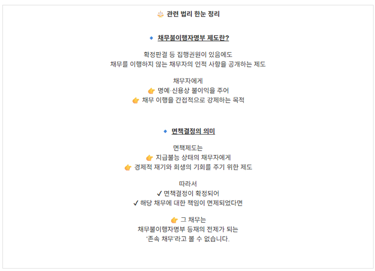 ✔ 면책결정과 채무불이행자명부 등재의 관계