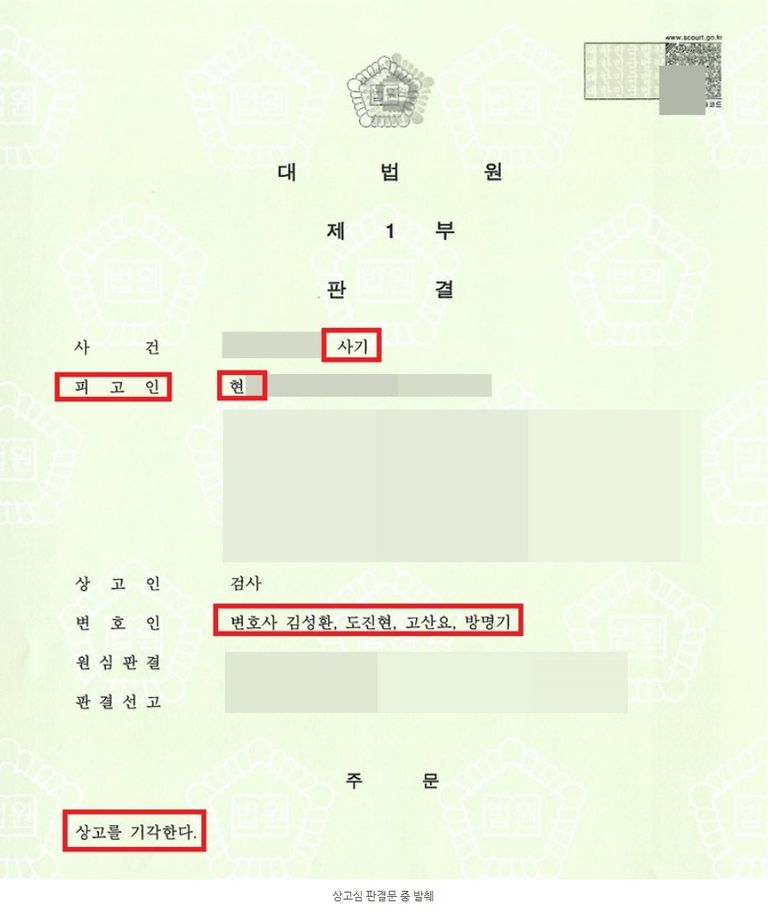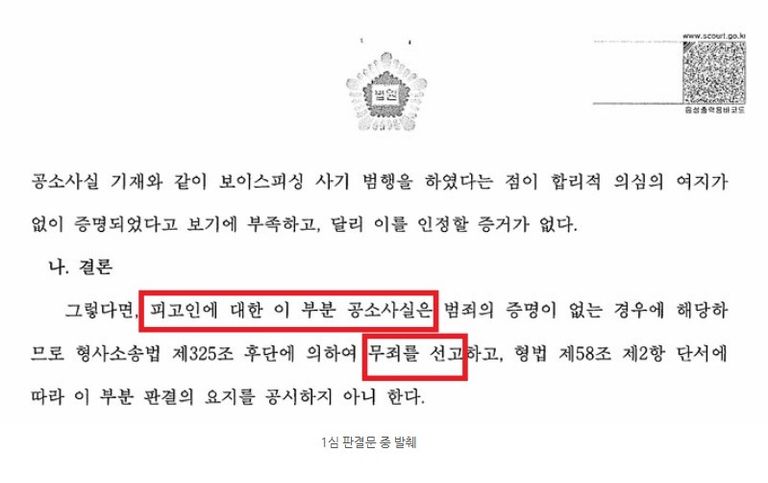 항소심에서 재차 무죄를 주장하였고, 전부 무죄 판결이 선고되었습니다.