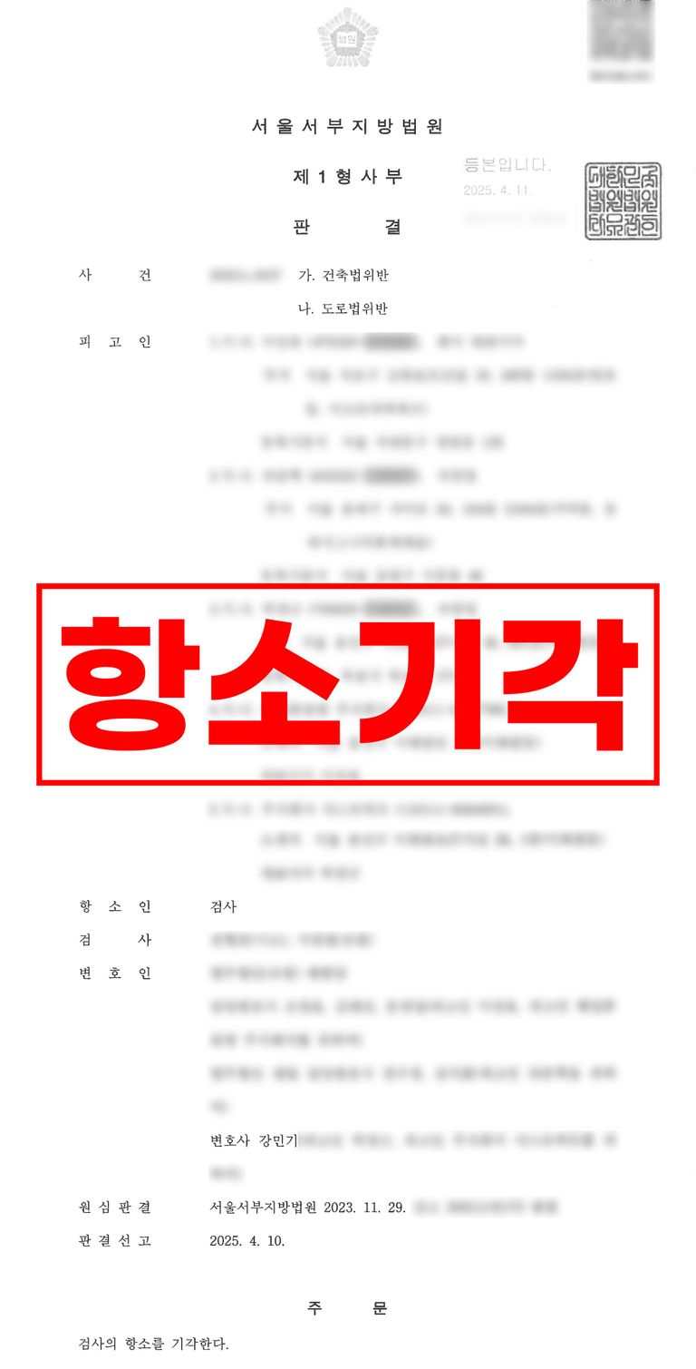 항소심 재판부는 법률사무소 새율의 주장을 받아들여 검사의 항소를 기각했습니다.