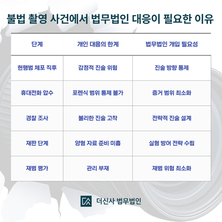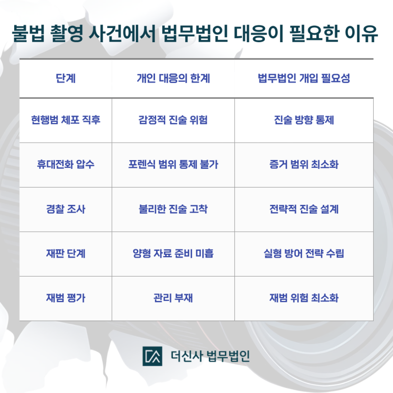 진술 방향, 압수수색 대응, 포렌식 범위, 합의 전략에 따라