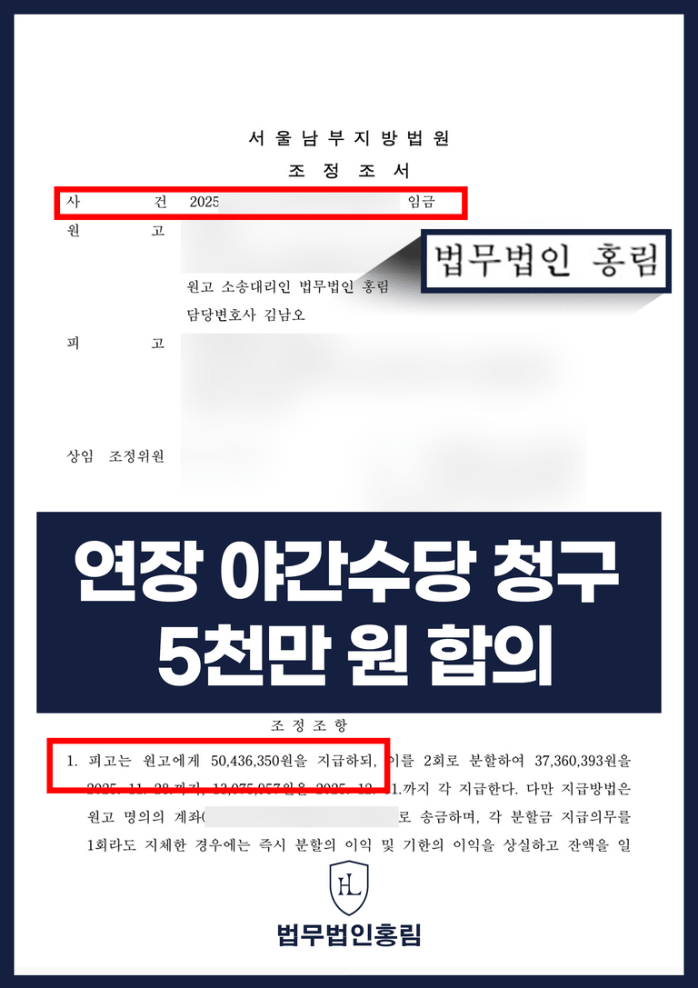 저희 노동전문로펌 홍림의 치밀한 법리 분석과 완벽한 증거 자료 제출 전략이 법정에서 그대로 인정받았습니다.