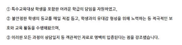 특정 문화 현상에 대한 감상이나 생각은 주관적일 수 밖에 없으며 일부 학생이 느낀 불편함만으로는 교사의 교육 활동 전체를 규정하는 것은 과도하다는 점을 지적했습니다.