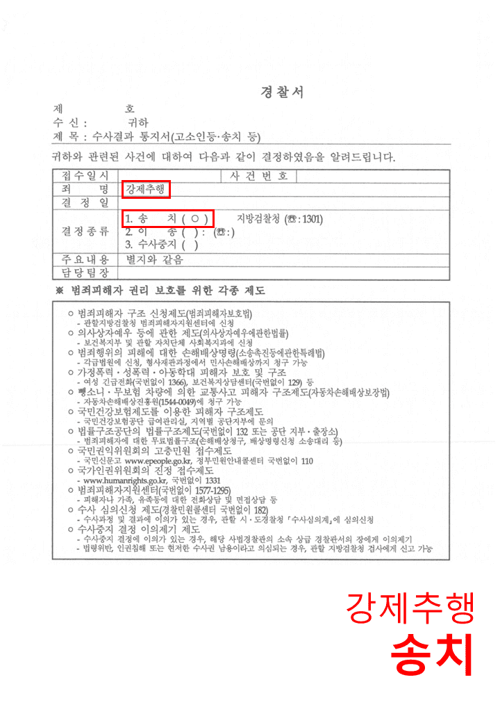 이러한 노력의 결과, 수사기관에서 송치 결정을 내려주셨습니다.