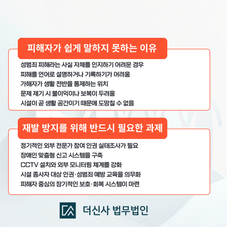 이는 장애인 성범죄가 개인의 일탈이 아닌, 사회 전체가 강력히 대응해야 할 중대 범죄임을 의미합니다.