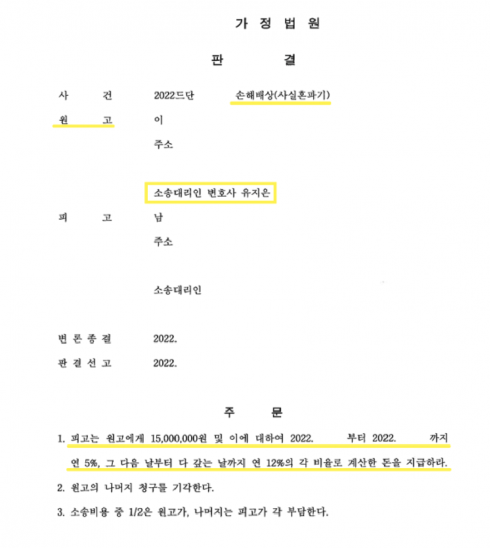 특히 사실혼 상태에서 일어난 불륜소송은 같은 사실관계라도 접근 방식에 따라 회수 가능한 실익은 크게 달라질 수 있습니다.