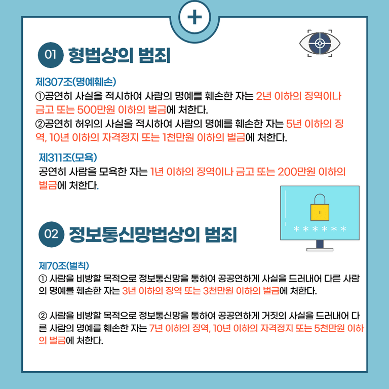 공유와 전파가 쉬운 인터넷 특성상, 특히 SNS상에 타인에 대한 모욕이나 허위사실, 조작된 사진이나 영상 유포 등의 범죄가 하루가 다르게 늘어나는 추세입니다.