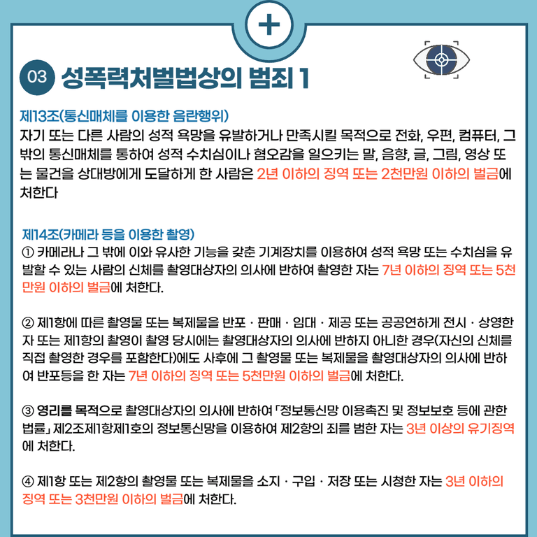 중요한 점은 통신매체(대표적으로 컴퓨터와 스마트폰)를 통하여 영상 뿐만 아니라 말, 음향, 글, 그림 심지어 물건을 도달하게 한 사람까지 처벌의 대상으로 두고 있습니다.