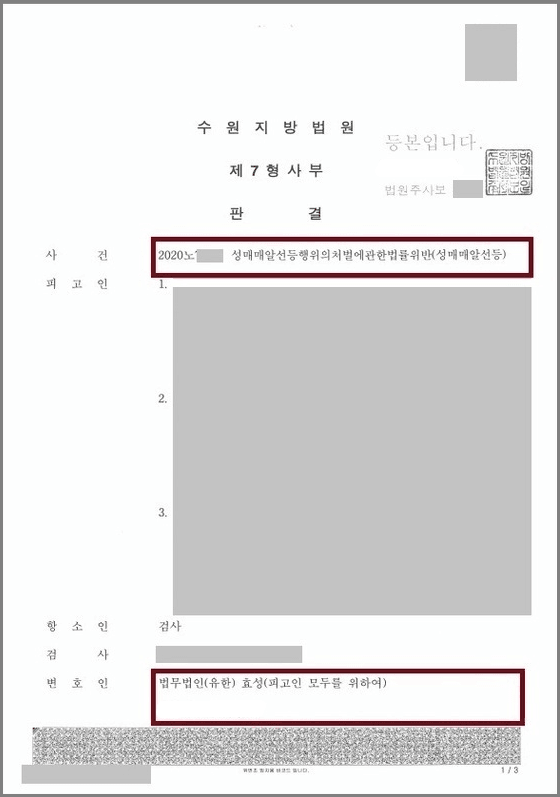 성매매알선 혐의로 1심에서 집행유예 선고를 받은 의뢰인들이 검사의 항소로 2심 재판을 받게 된 사건에서