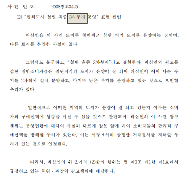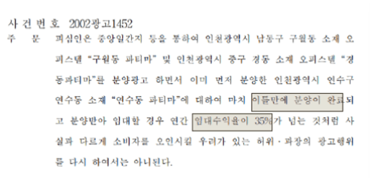 4) 임대수익률과 분양마감(완료)에 대한 허위광고를 한 사안