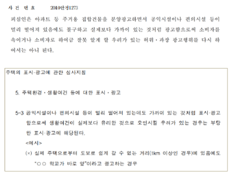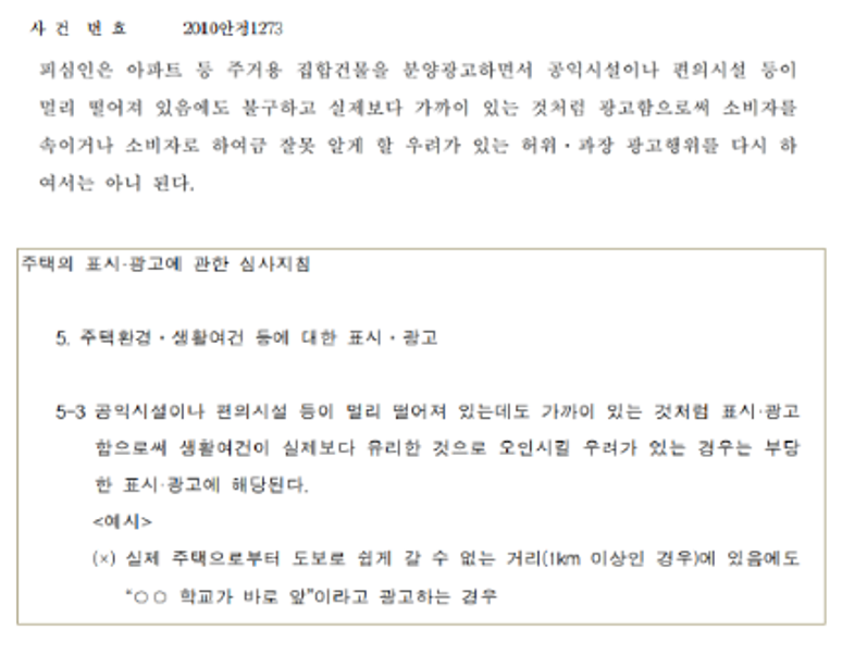 2) 공익시설, 편의시설이 1km이상 떨어져있음에도 바로 앞이라고 광고한 사안