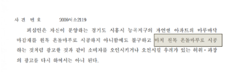1) 친환경이 아님에도 원목 온돌마루로 시공한 것 처럼 광고한 사안