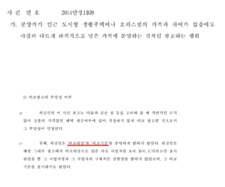 3) 사실 가격차이가 별로 없음에도 파격적으로 낮은 가격처럼 광고한 사안(정확한 비교기준 및 대상없이)