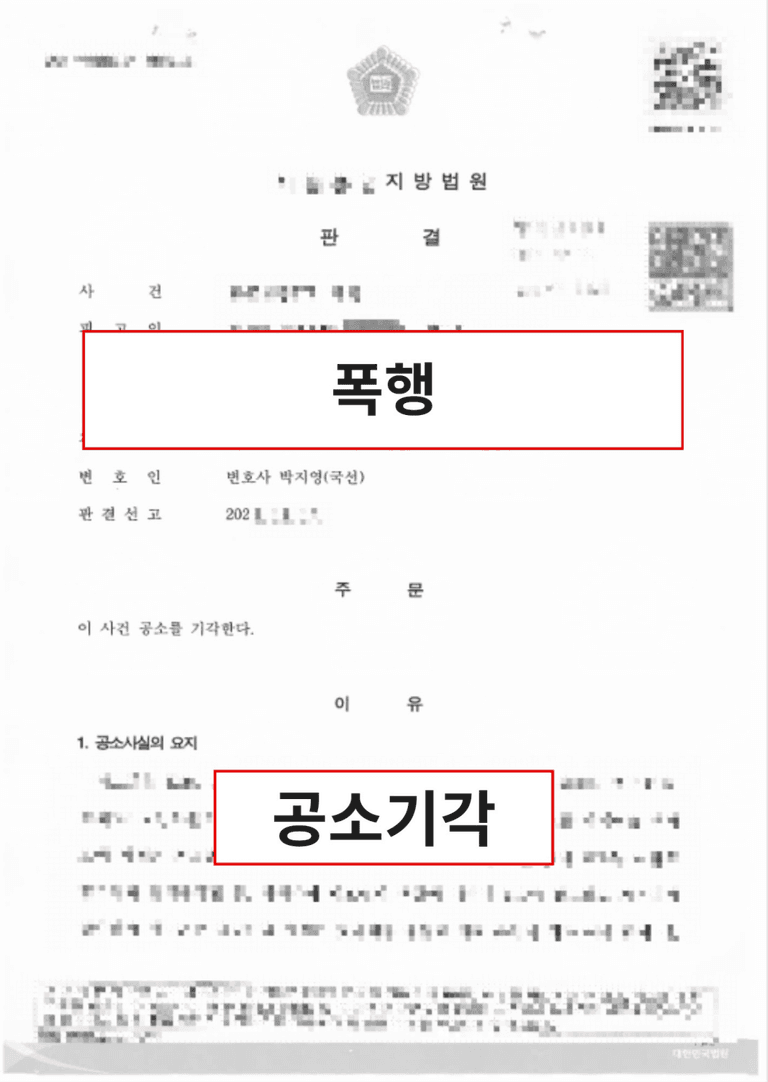 폭행죄 정식재판 청구 된 사건에서 대응하여 공소기각 이끌어낸 사례