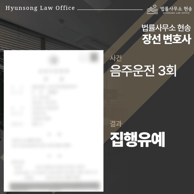 혐의 : 음주운전 3회 → 결과 : ‘집행유예’로 사건 종결