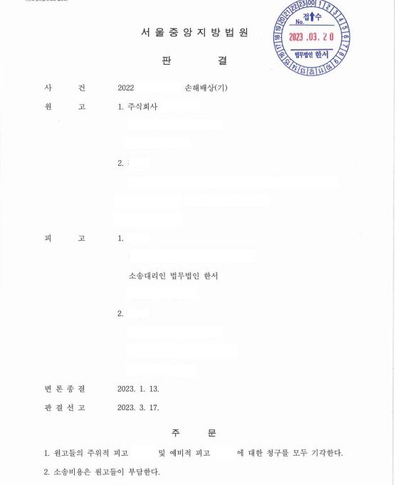 법원은 원고들의 청구를 전부 기각하였습니다.