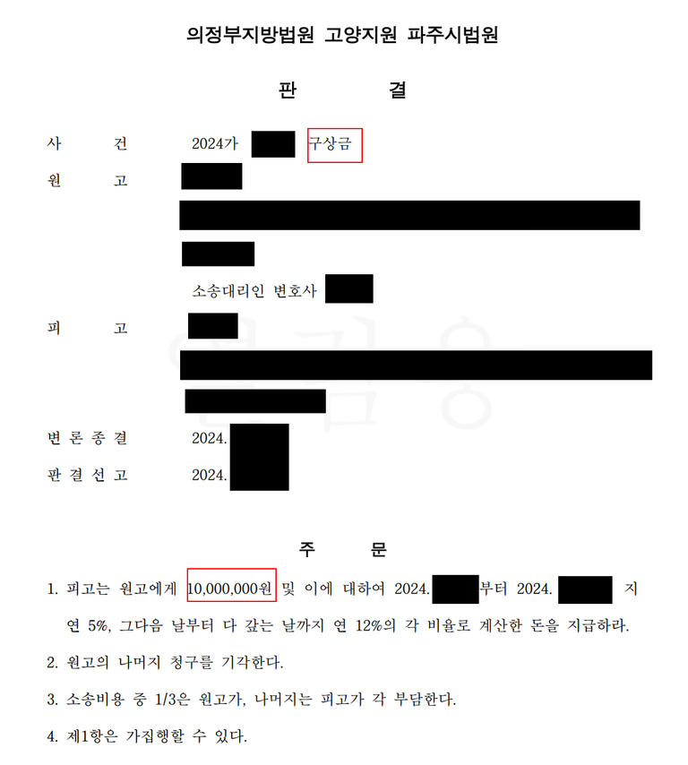 만약 원고도 항소하였다면 항소심에서 조금 더 나왔겠네요.