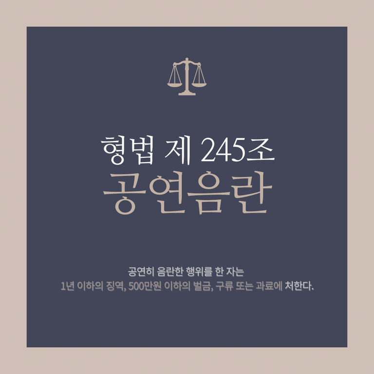 공연히 음란한 행위를 한 자는 1년 이하의 징역, 500만원 이하의 벌금, 구류 또는 과료에 처한다.