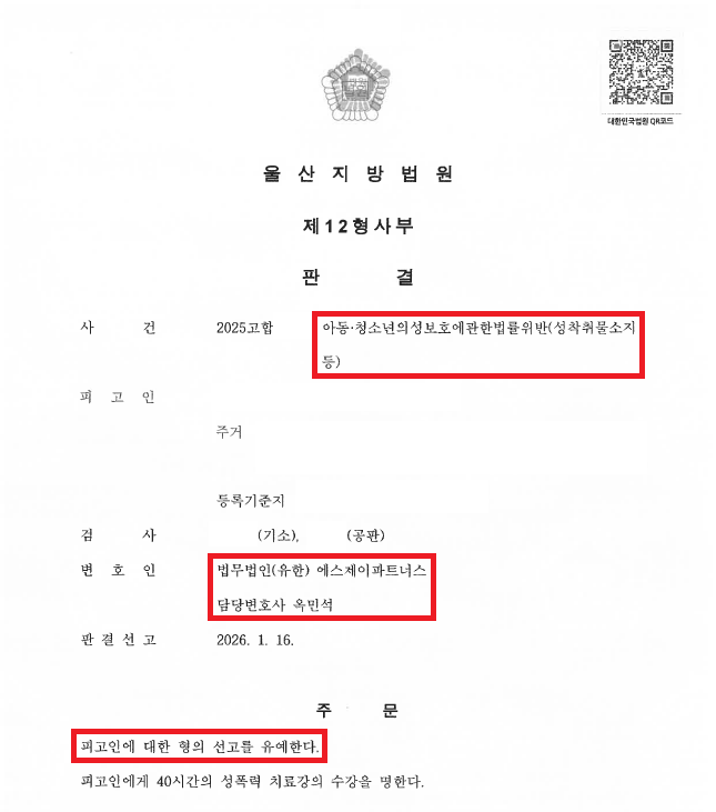 그런데 이로부터 얼마 뒤, A씨는 울산경찰청으로부터 아청법위반(성착취물소지등) 혐의로 압수·수색을 당하게 되었습니다.