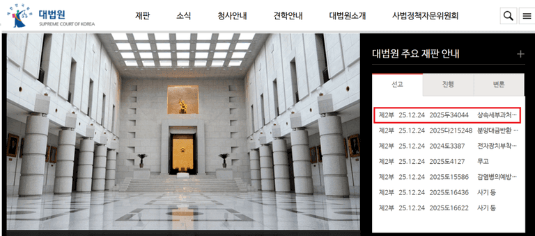참고로, 이 사건은 대법원 홈페이지 메인화면의 2025. 12. 24.자 주요 선고 사건 중에서도