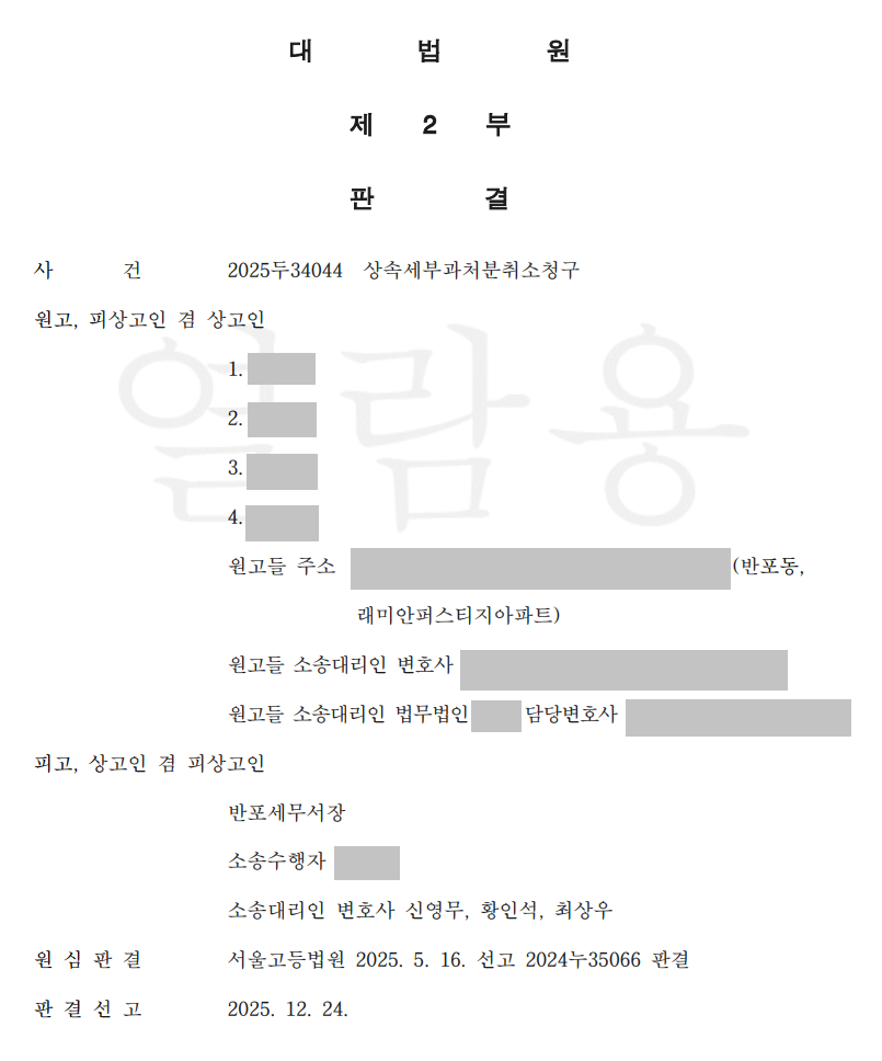 오늘 소개해드릴 상속세부과처분취소 사건은 제가 2년 동안 전력을 다해 싸운 사건으로