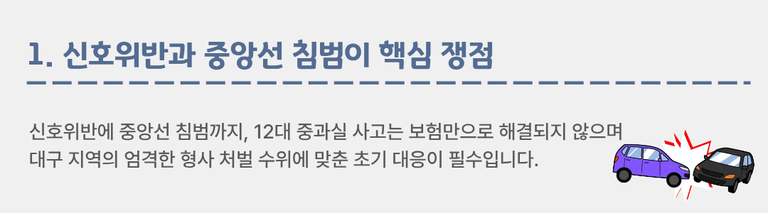 이때 대구교통사고변호사의 초기 대응이 형사처벌 수위를 좌우합니다.