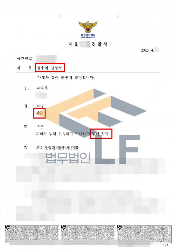 의뢰인은 경찰로부터 경찰불송치 처분을 받으며 문제를 빠르게 종결할 수 있었습니다.