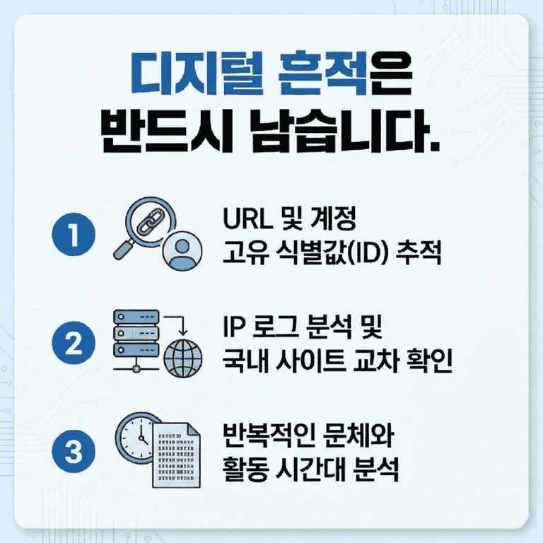 특히 지인에 의한 악플일 경우 이 패턴 분석이 결정적인 역할을 합니다.