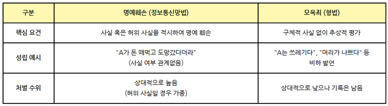 명예훼손 vs 모욕, 내 상황은 어디에 해당할까?