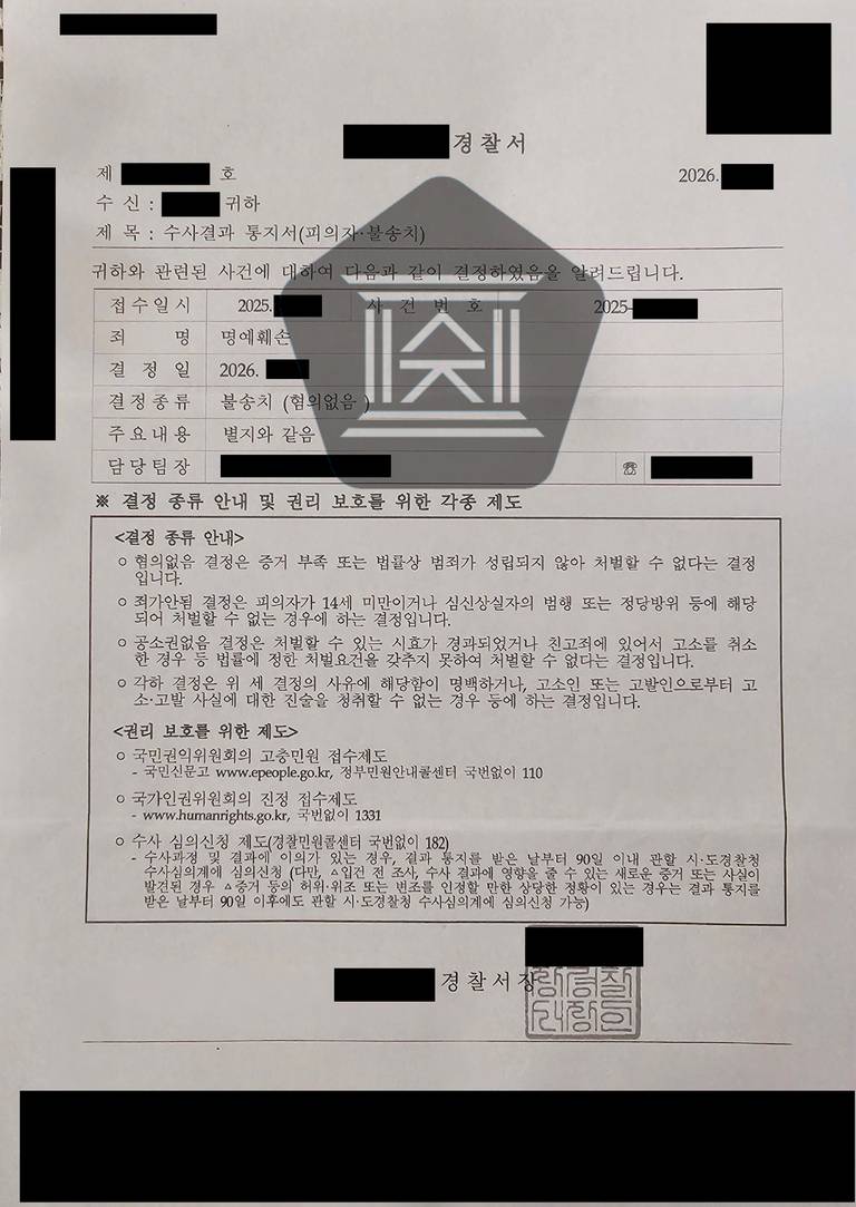 1. 명예훼손 불송치결정을 위한 인천 변호사의 조력