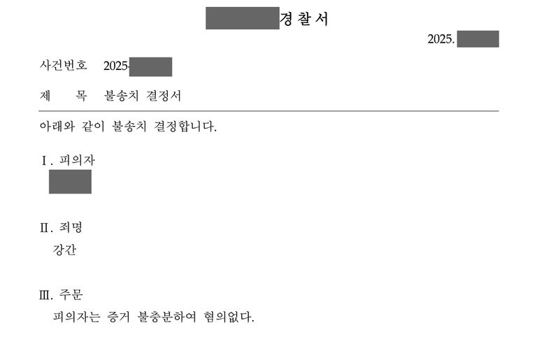 의뢰인에 대해 강간 혐의 불송치(혐의없음) 결정을 내렸습니다.