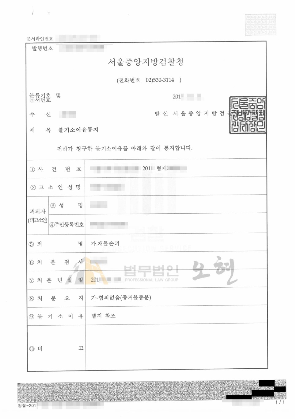 본 변호인의 의견서를 검토한 담당검사는 “차량에 이미 많은 흠집이 있었던 것으로 보아 피의자의 행위로 인해 피해자 차량이 손괴된 사실은 인정하기 어렵다.”며 의뢰인에 대해 혐의없음 처분하였습니다.