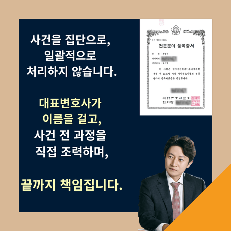 사건 담당 변호인의 역량에 따라 사건 해결 방향 및 과정은 물론 결과까지 달라질 수도 있습니다.