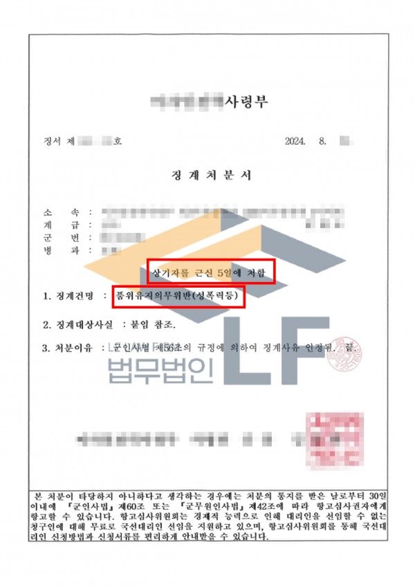 군 징계 과정에서는 사건 결과 통지서(처분서)*수사기록 요지*피해자 진술 요약이 징계자료로 제출되는 경우가 많으며, 해당 자료를 어떻게 해석하고 대응하는가에 따라 징계 수위가 달라질 수 있습니다.