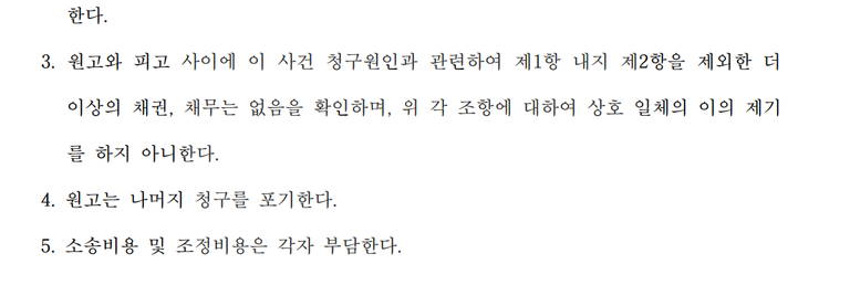 양측은 위 강제조정을 받아들이면서 소송은 5개월만에 끝납니다.