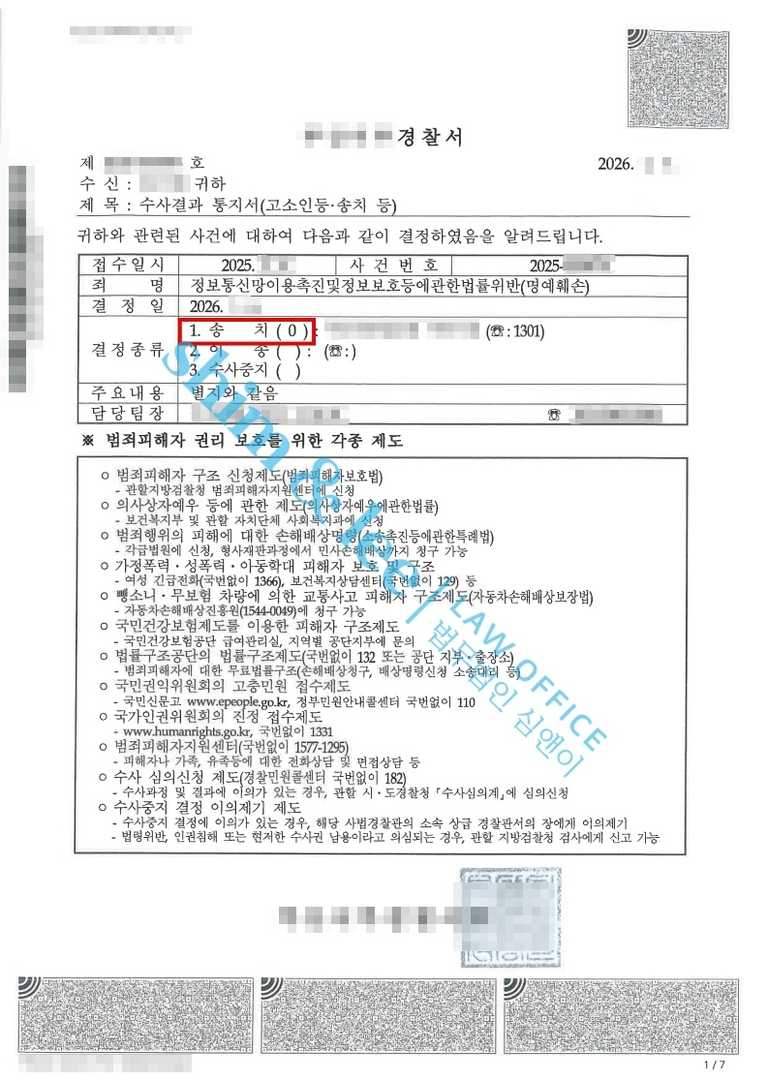 - 가해자는 수사 받는 내내, 정확한 인적사항을 언급한 적 없고 단순 뒷담화 형식이라 명예훼손 특정성이 성립되지 않는다며 강하게 부인하였지만 담당 수사관은 심앤이가 제출한 자료와 의견서를 면밀히 검토한 끝에 가해자의 발언이 자극적인 방송을 통해 피해자를 공개적으로 비방하고, 피해자의 명예를 심각하게 훼손한 점과 비밀준수 의무를 위반한 점을 인정하여 가해자를 검찰에 기소 의견으로 송치하였습니다.